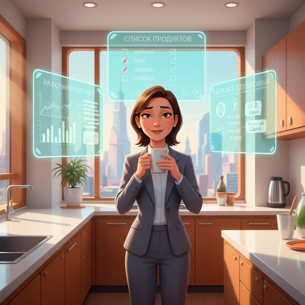 Вместо того чтобы распыляться, вы используете ИИ как дирижера вашего дня. Он дирижирует цифровым оркестром: одним алгоритмом сортирует входящие, другим — составляет меню на основе распродаж в ближайшем супермаркете, а третьим — резервирует вам "окна глубокой работы" в календаре. Ваша задача — только утвердить дирижерскую палочку.